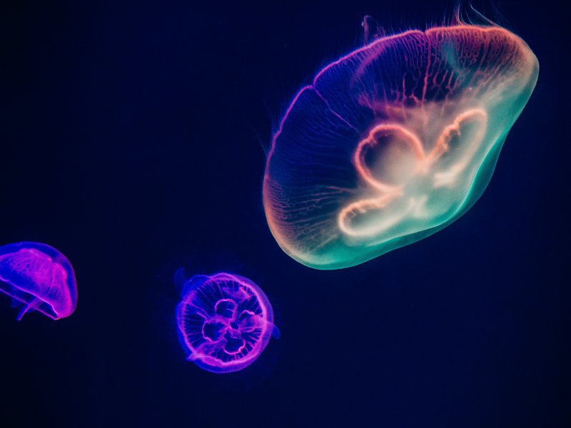 Обои: подводный мир, медузы, темный - 800x600