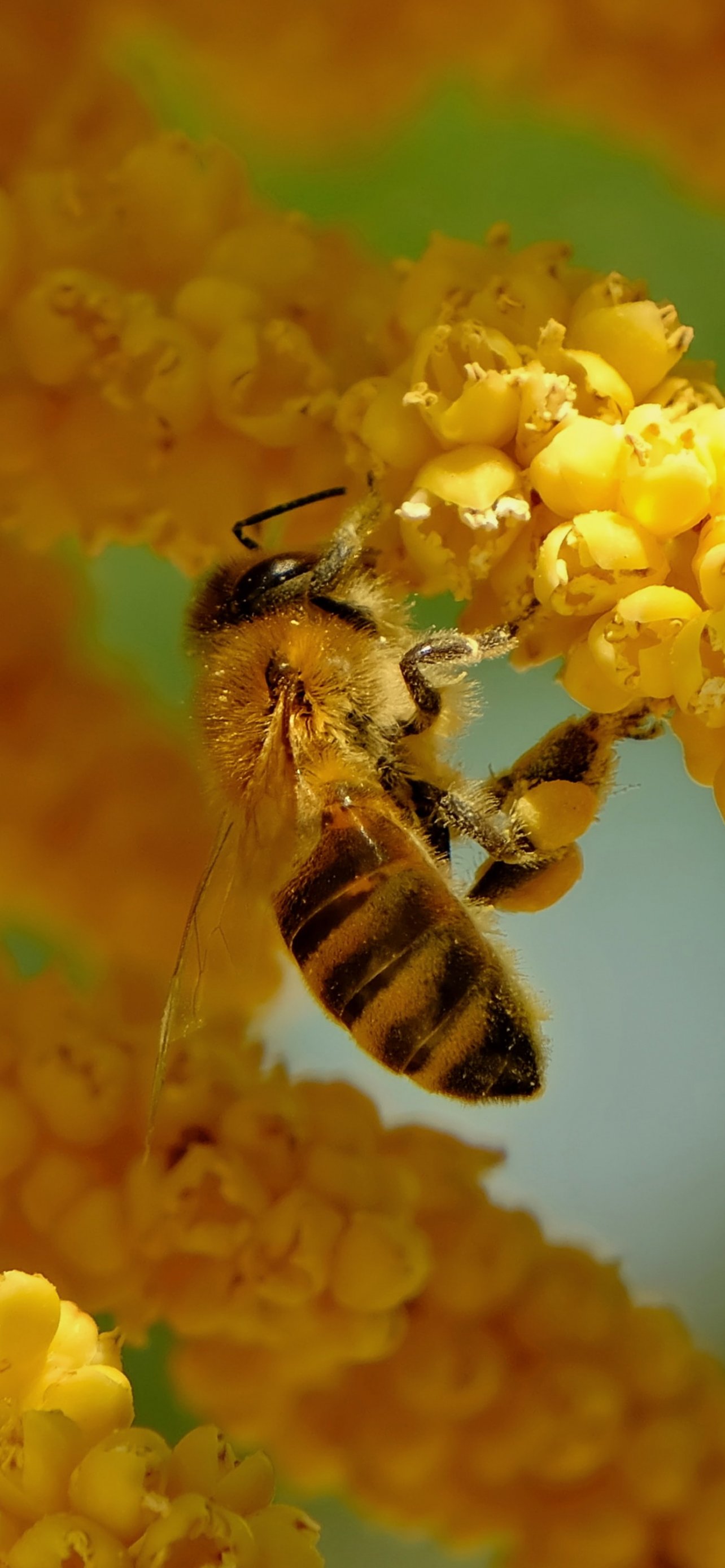 Обои: пчела, насекомое, цветы - 1284x2778