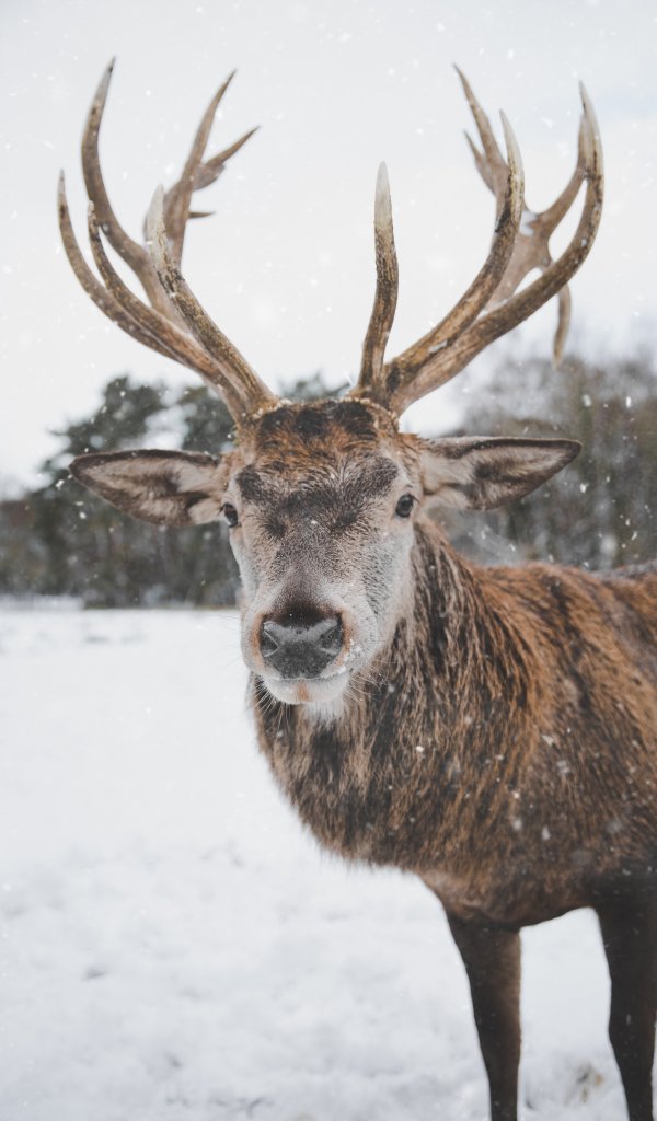 Обои: олень, зима, снег - 600x1024