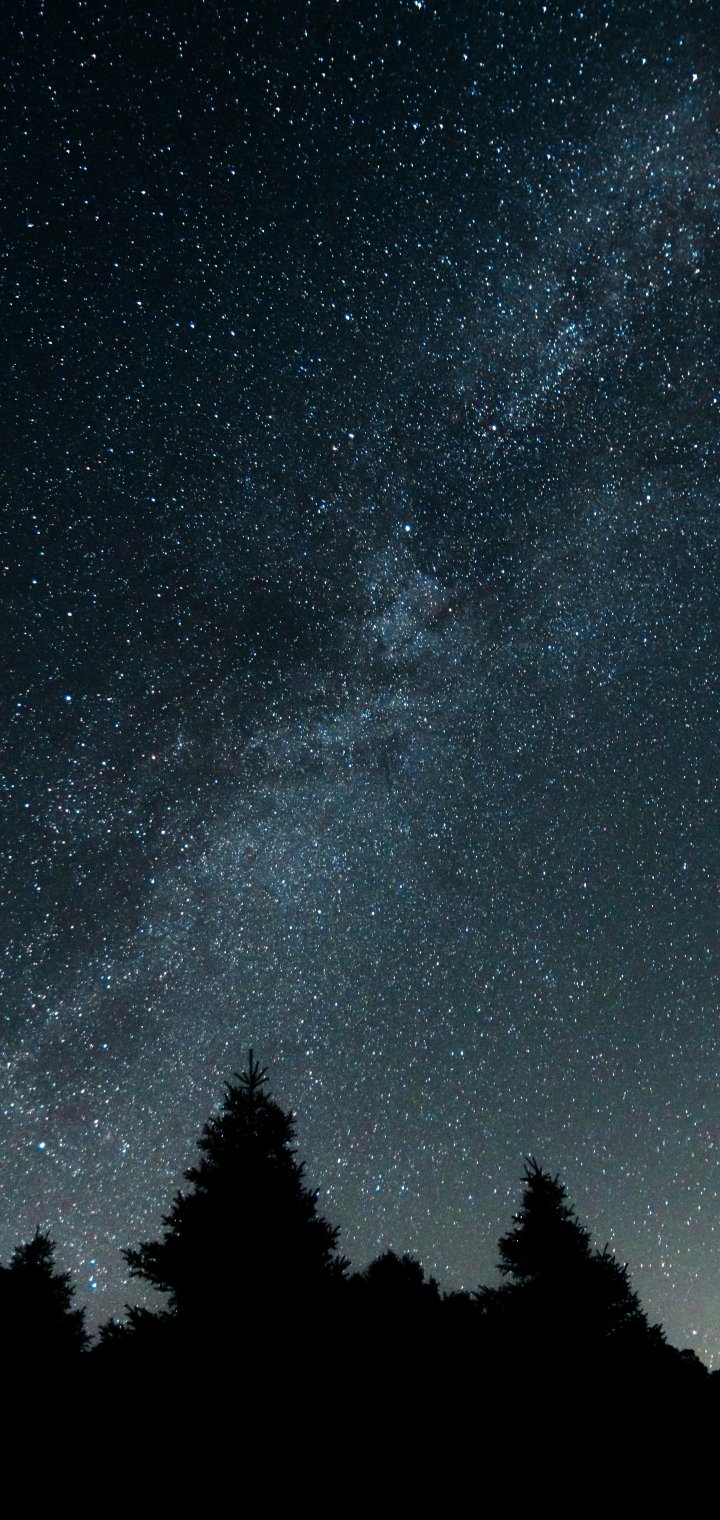 Обои: звездная ночь, лес - 720x1520