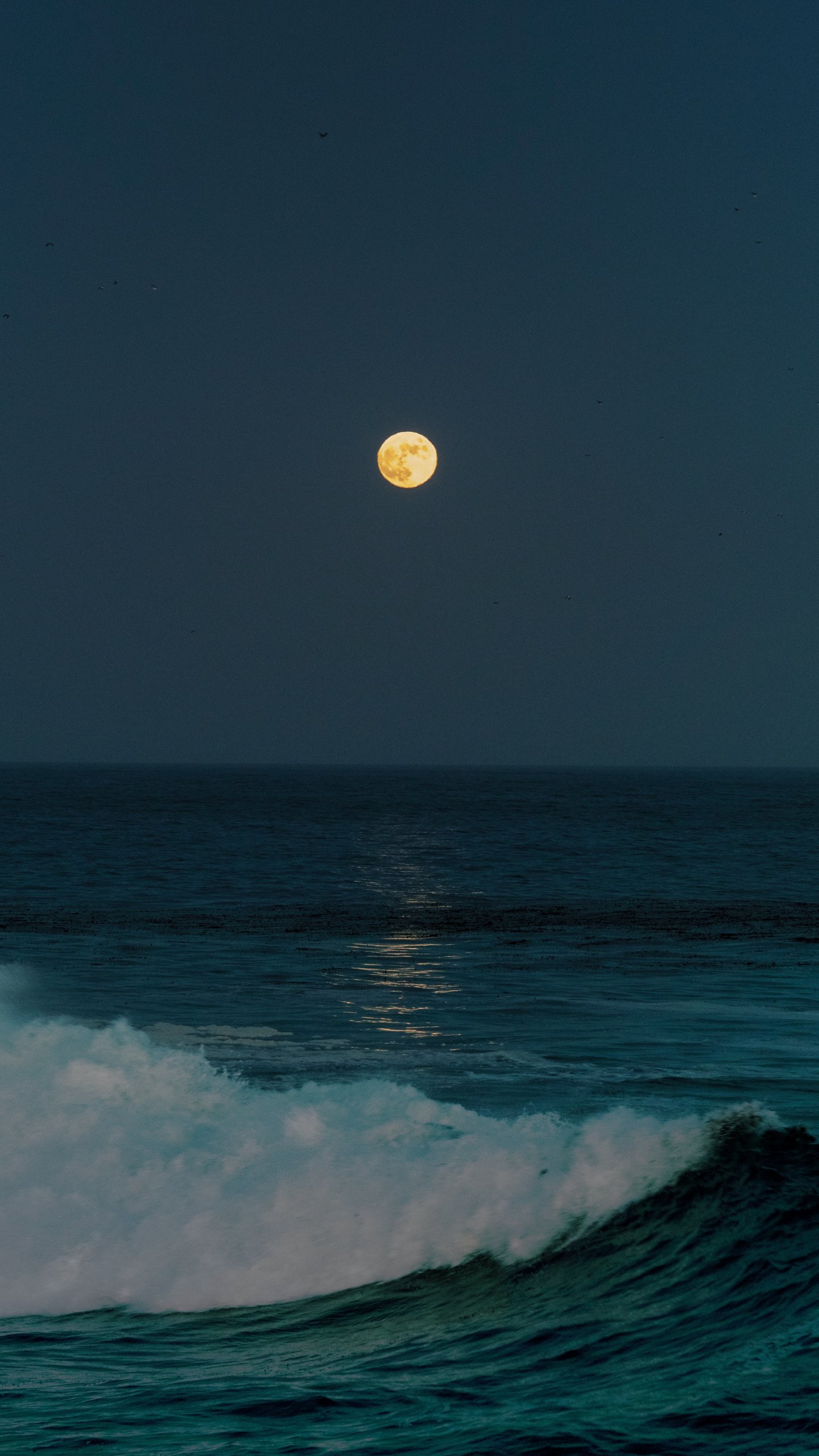 Обои: полнолуние, морские волны - 1440x2560