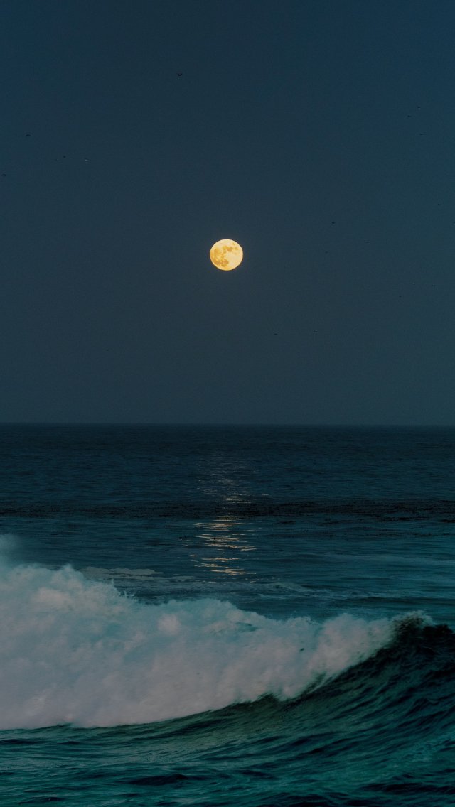 Обои: полнолуние, морские волны - 640x1136