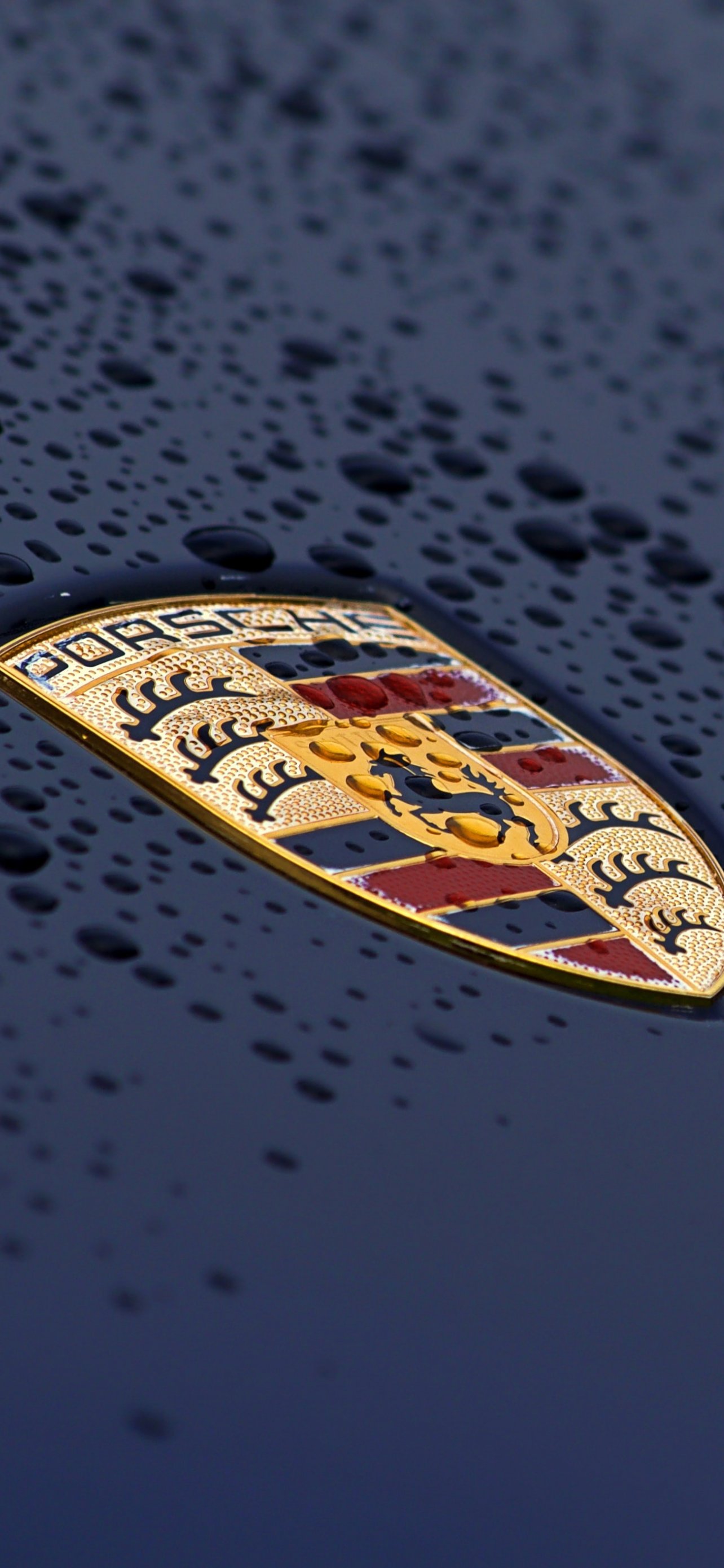 Обои: логотип Porsche, капли, капот - 1284x2778