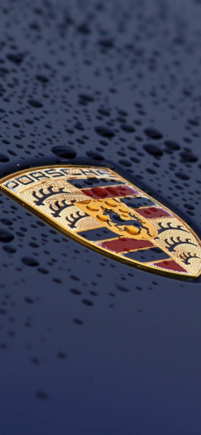 Обои: логотип Porsche, капли, капот - 828x1792