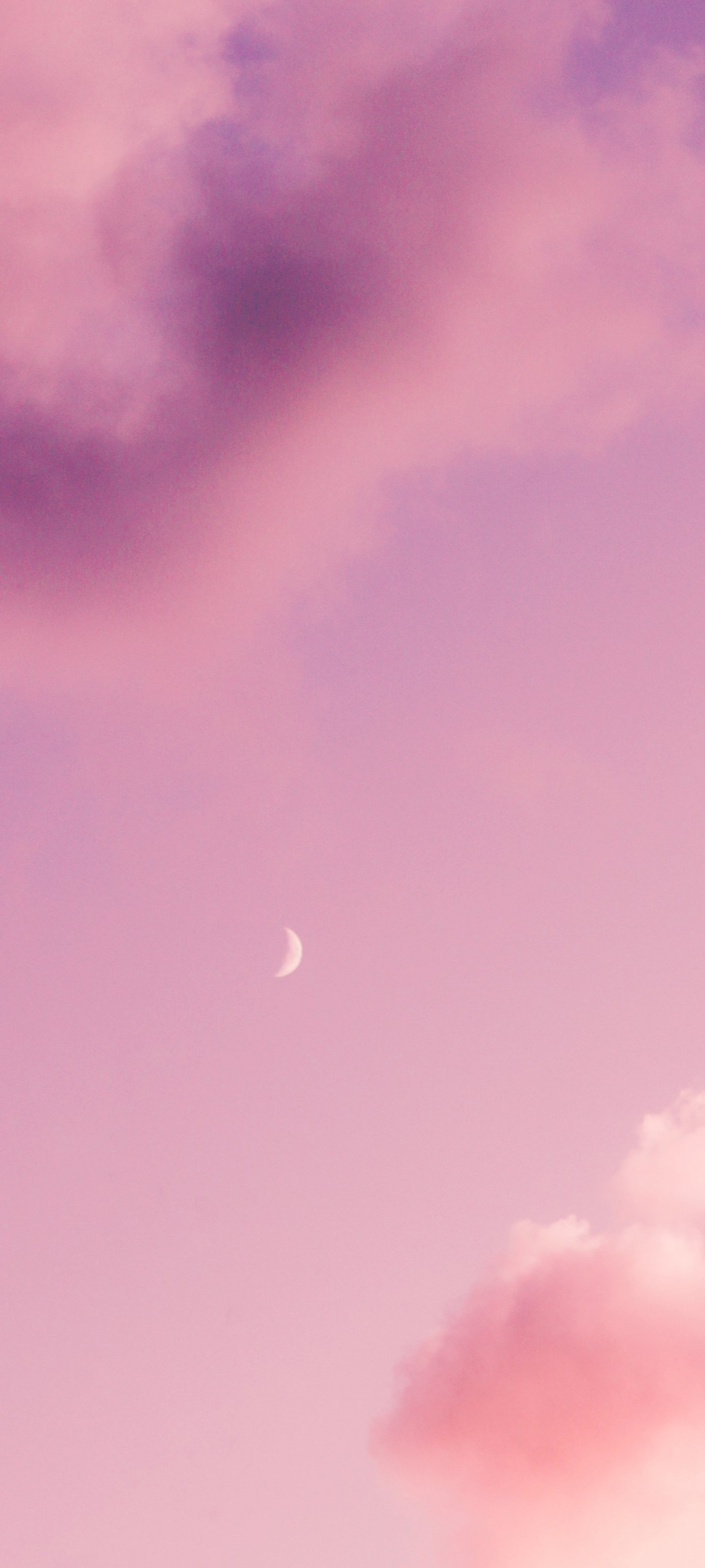 Обои: месяц, розовое небо - 1440x3200