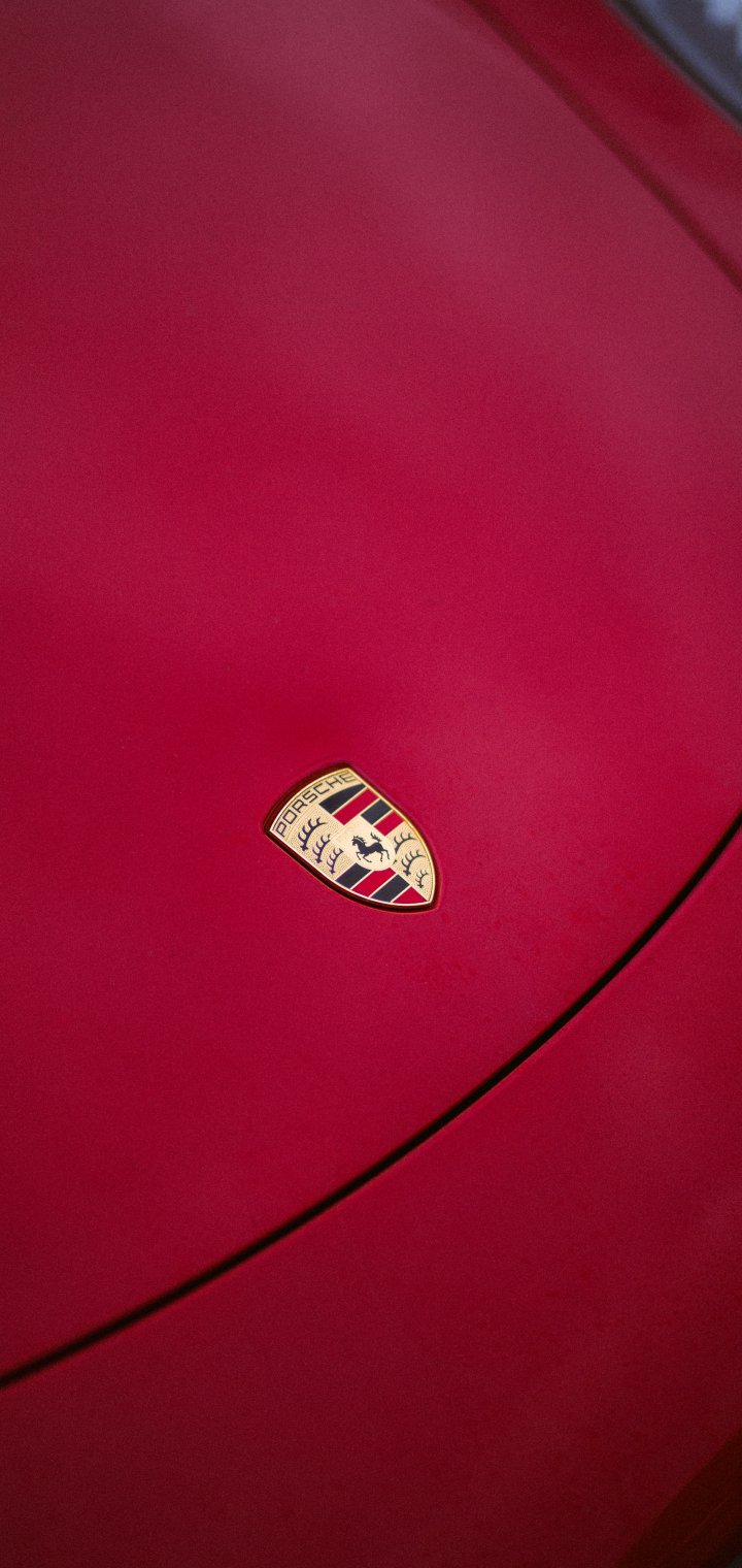 Обои: логотип Porsche, эмблема, капот - 720x1520