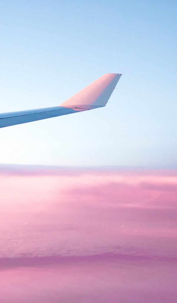Обои: крыло самолета, розовое небо, полет - 600x1024
