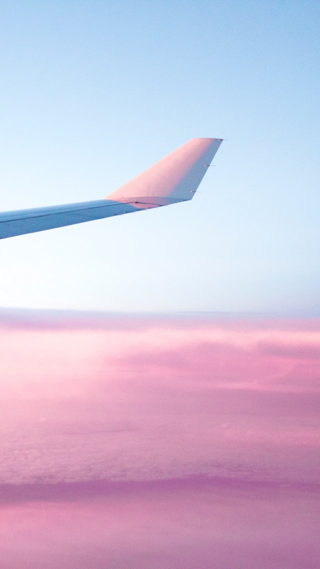 Обои: крыло самолета, розовое небо, полет - 640x1136