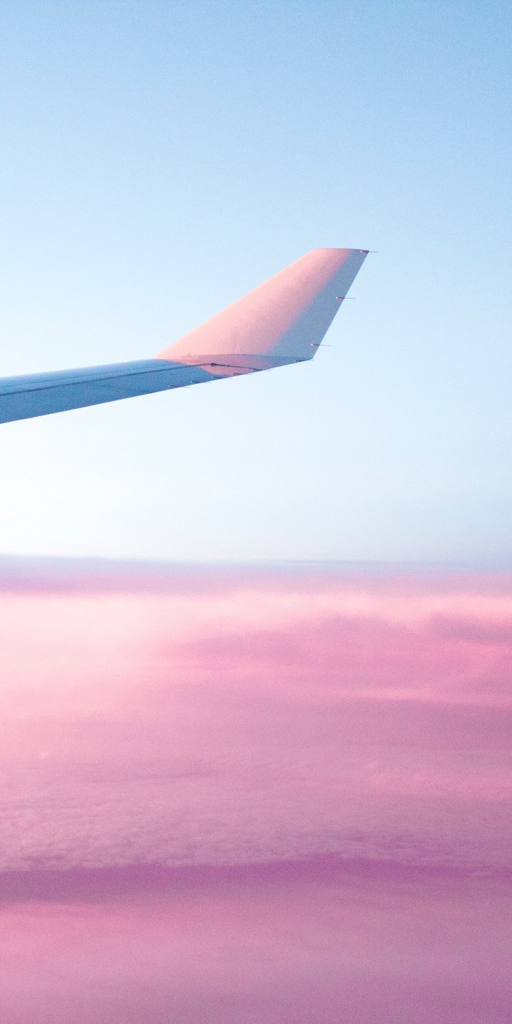 Обои: крыло самолета, розовое небо, полет - 720x1440