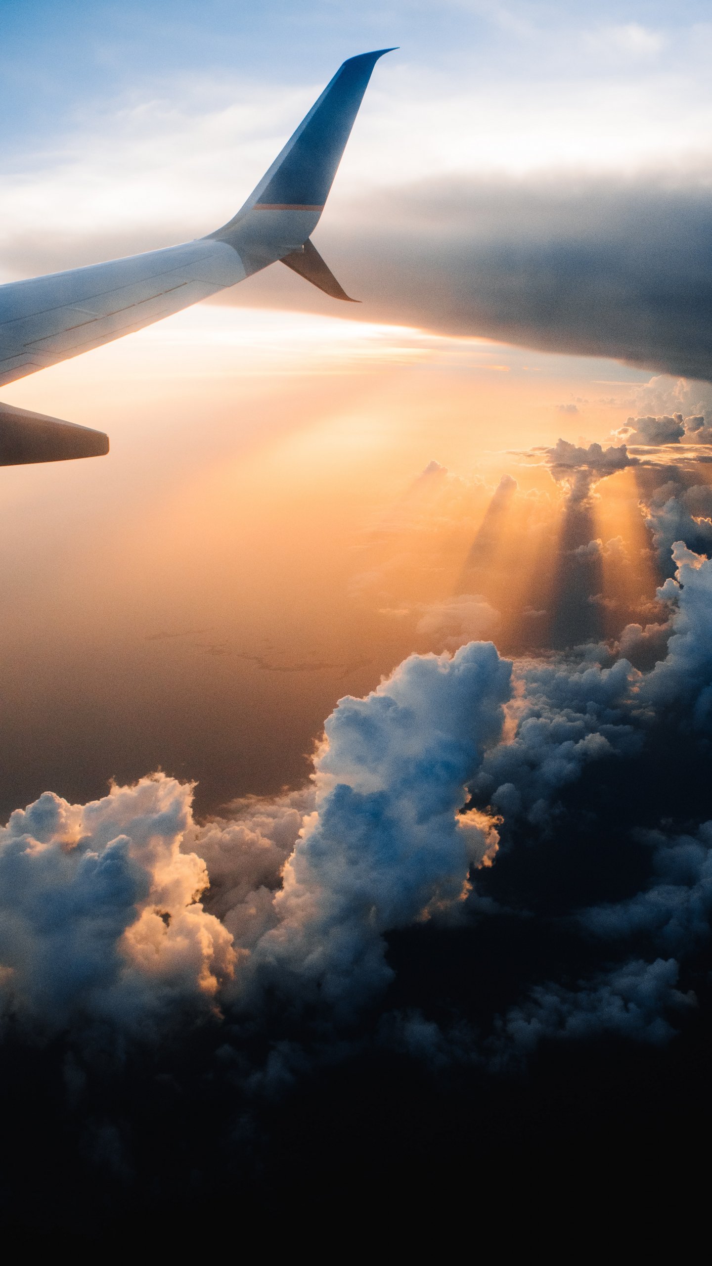 Обои: крыло самолета, солнечный свет, полет - 1440x2560