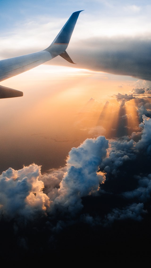 Обои: крыло самолета, солнечный свет, полет - 640x1136