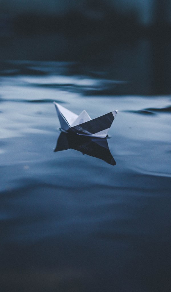 Обои: бумажный кораблик, вода, синий - 600x1024