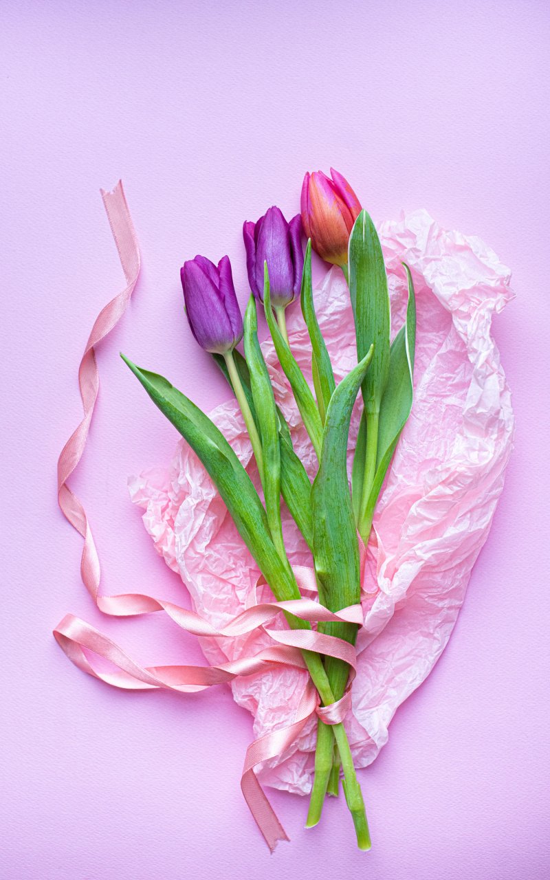 Обои: букет тюльпанов, фиолетовый, цветочная композиция - 800x1280