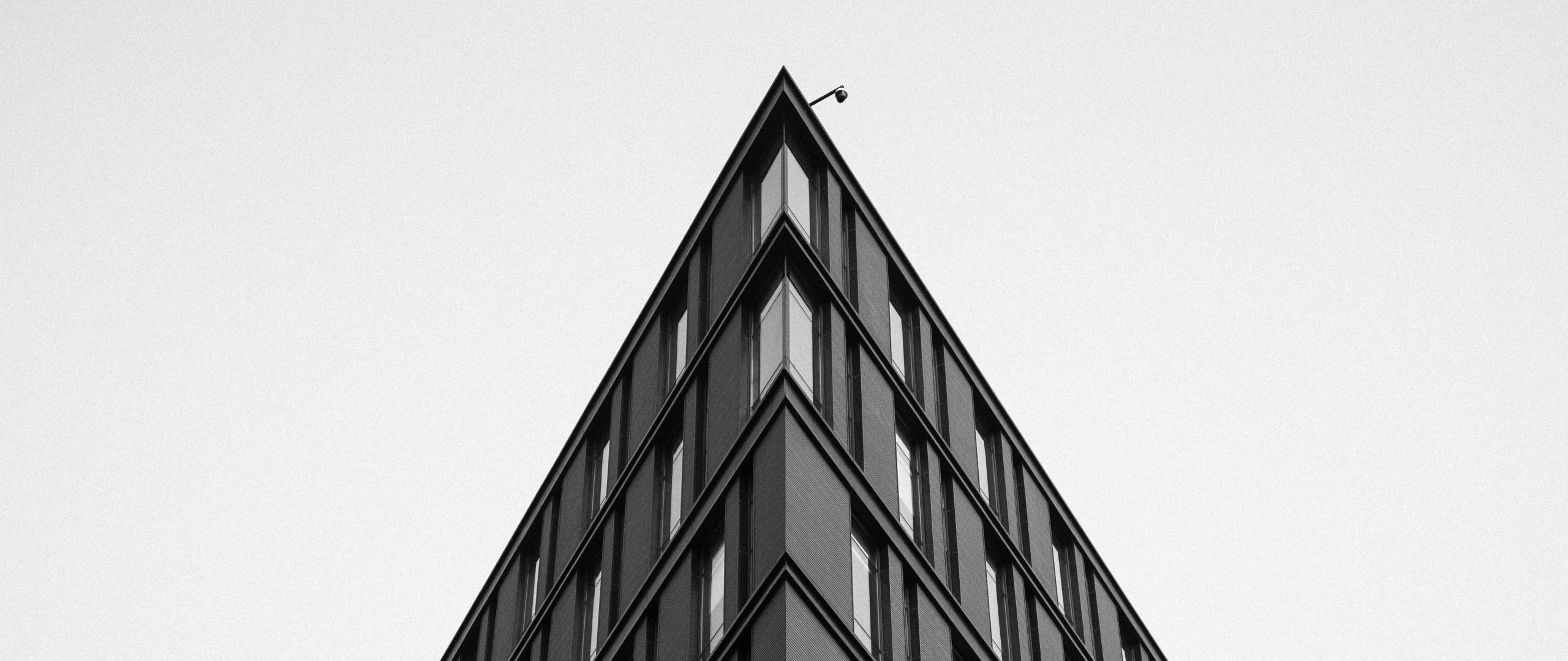 Обои: здание, угол дома, черное и белое - 2560x1080