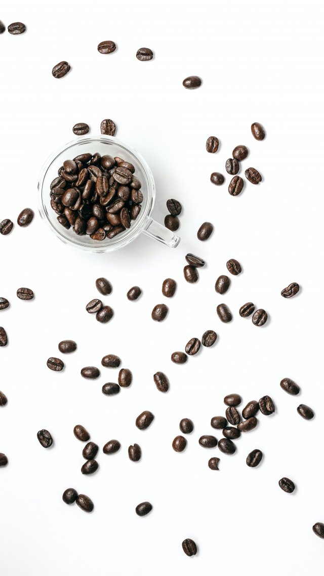 Обои: кофейные зерна, на белом фоне, светлый - 640x1136