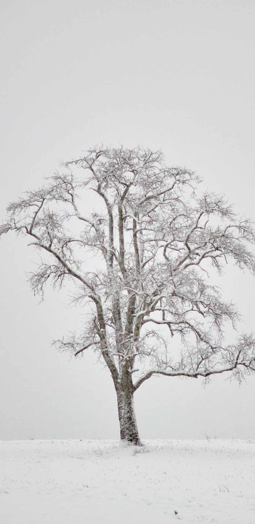 Обои: одинокое дерево, зима, белый - 1080x2220