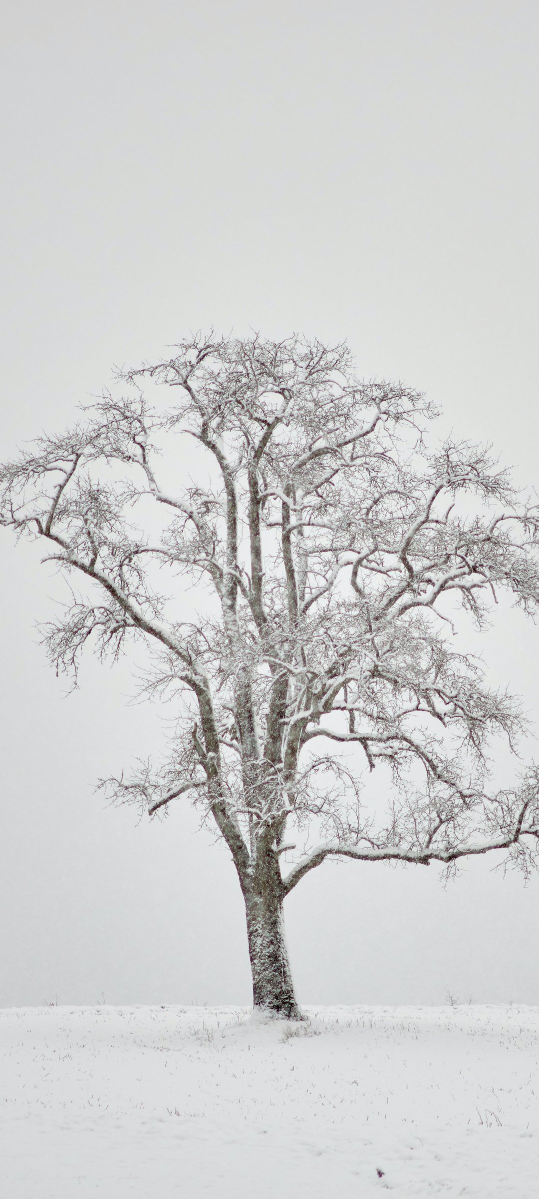 Обои: одинокое дерево, зима, белый - 1080x2400
