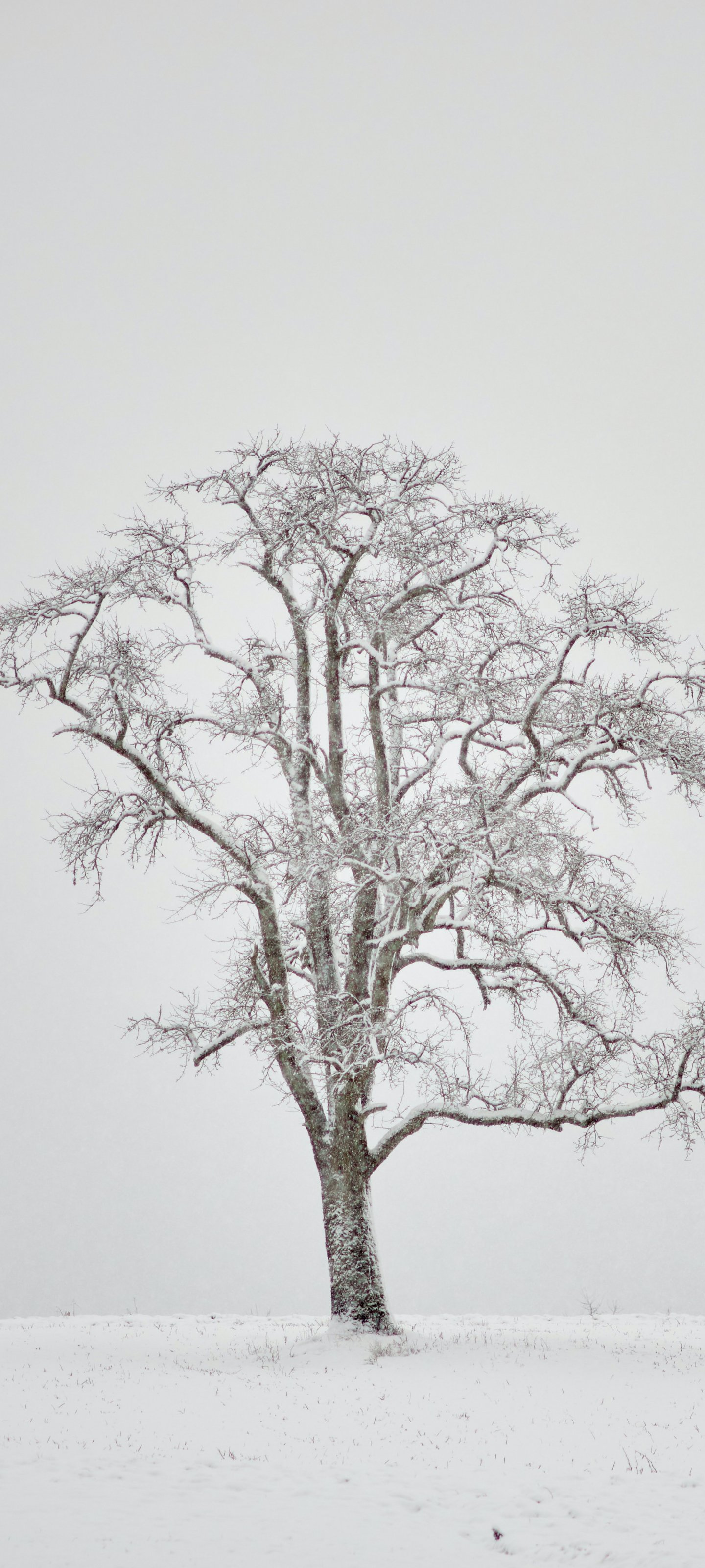 Обои: одинокое дерево, зима, белый - 1440x3200