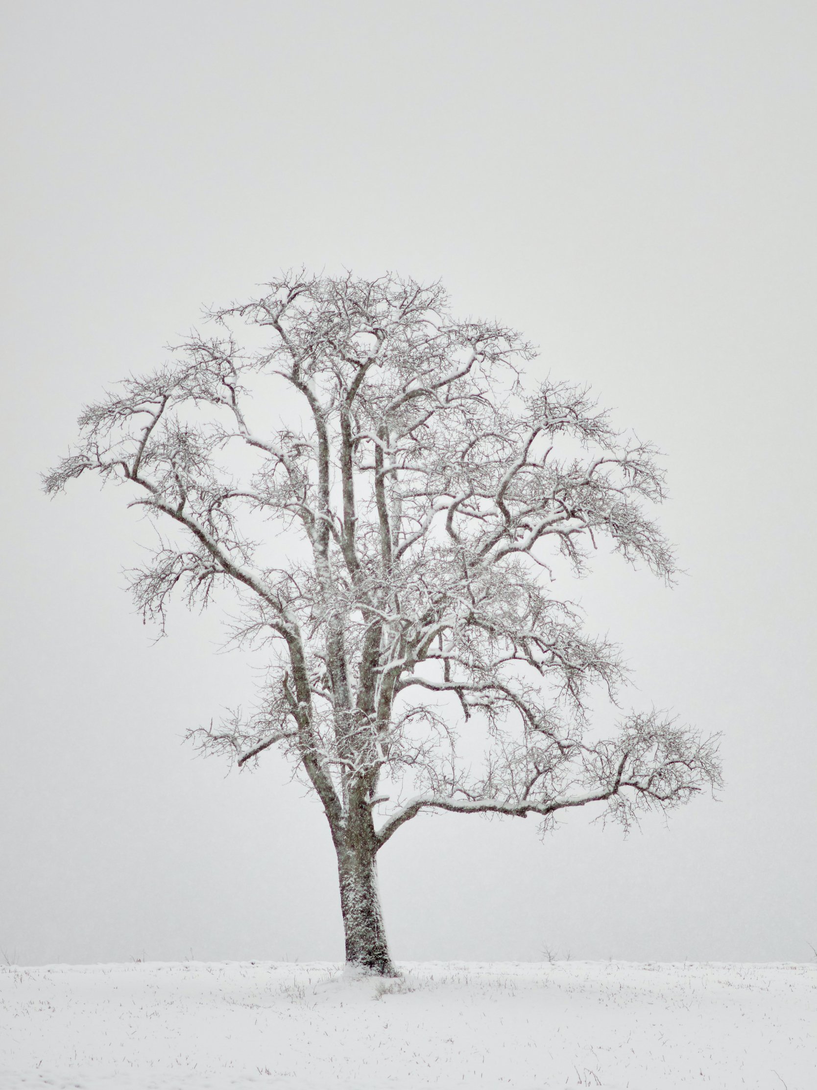Обои: одинокое дерево, зима, белый - 1668x2224