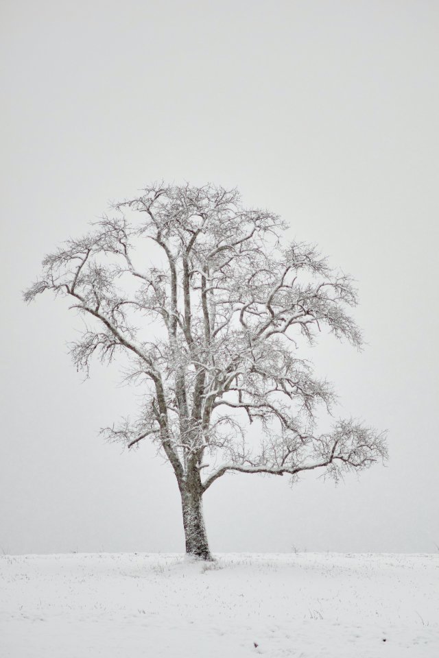 Обои: одинокое дерево, зима, белый - 640x960
