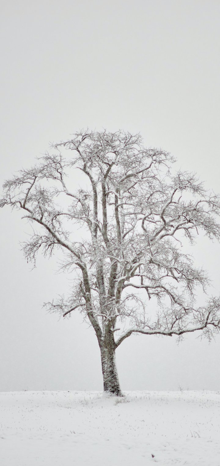 Обои: одинокое дерево, зима, белый - 720x1520