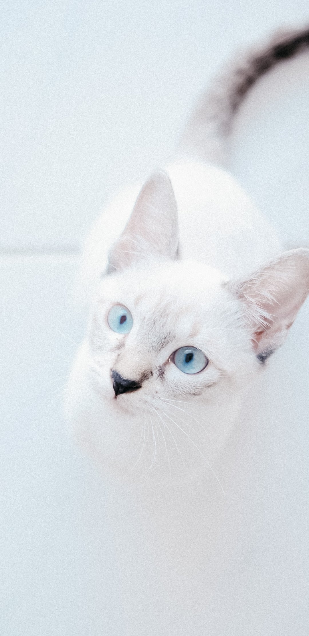 Обои: белая кошка, голубые глаза, взгляд - 1080x2220