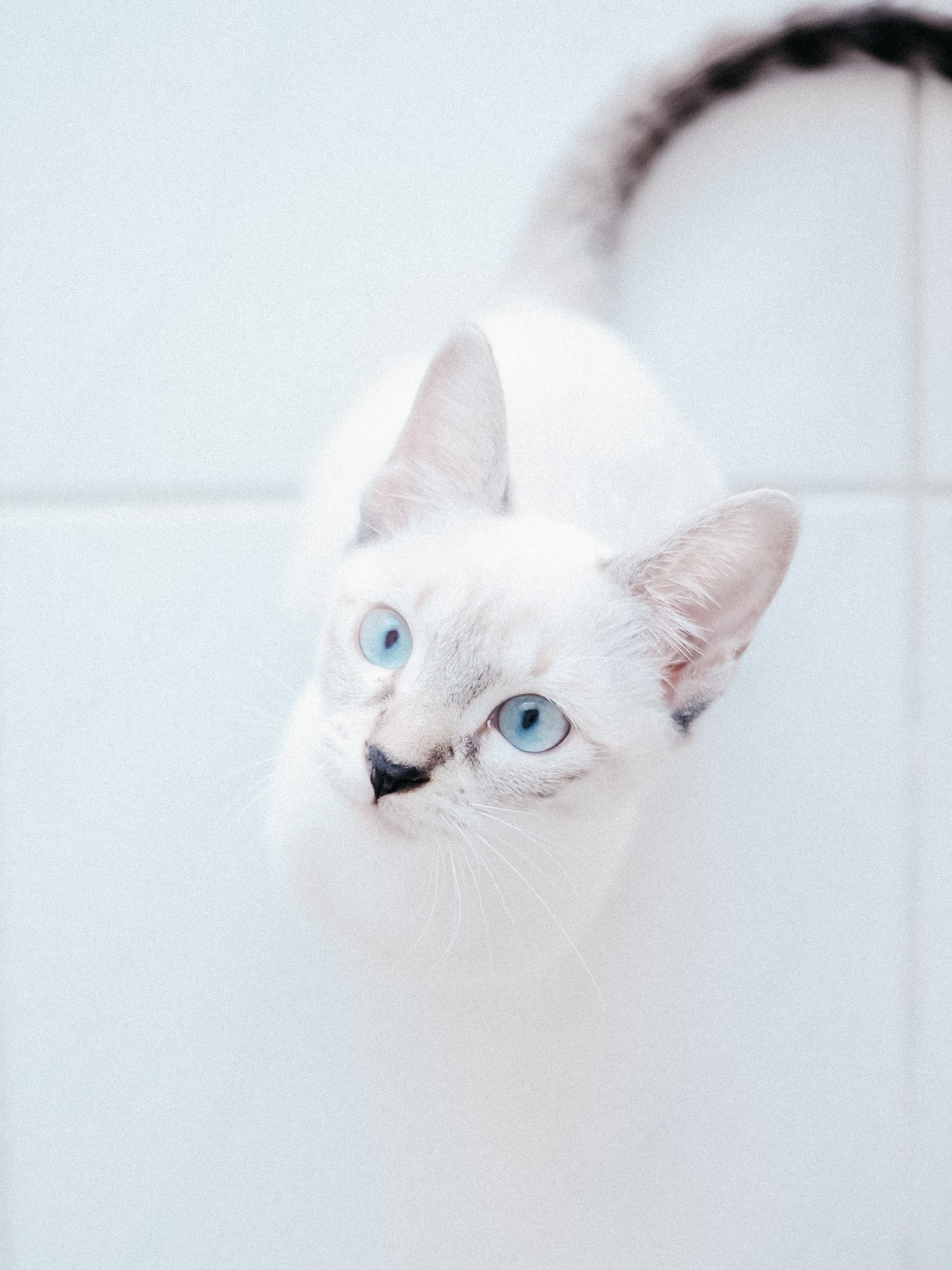 Обои: белая кошка, голубые глаза, взгляд - 1536x2048
