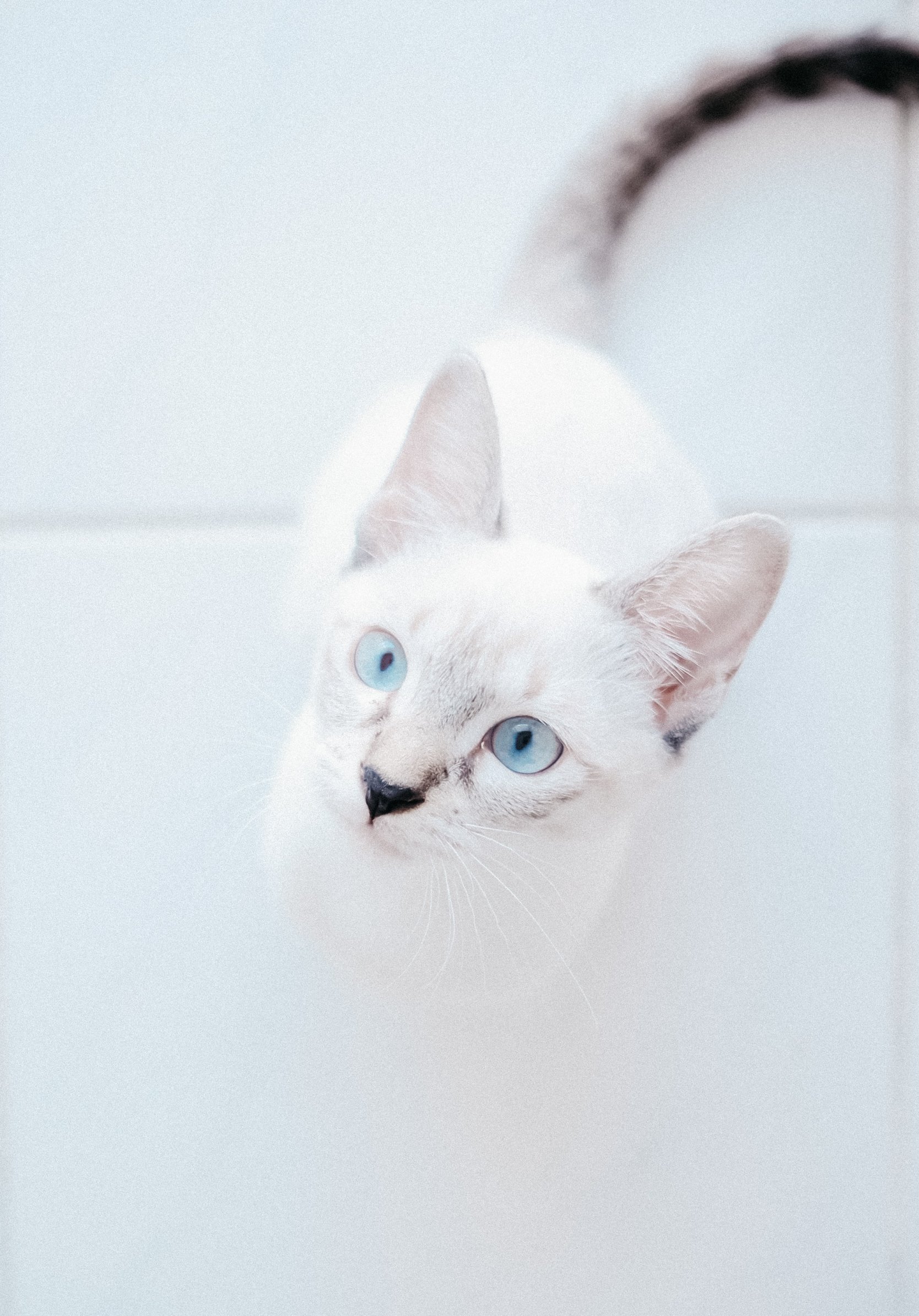 Обои: белая кошка, голубые глаза, взгляд - 1668x2388