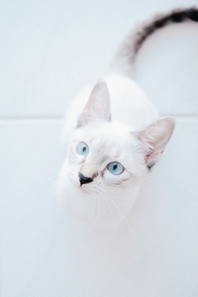 Обои: белая кошка, голубые глаза, взгляд - 640x960