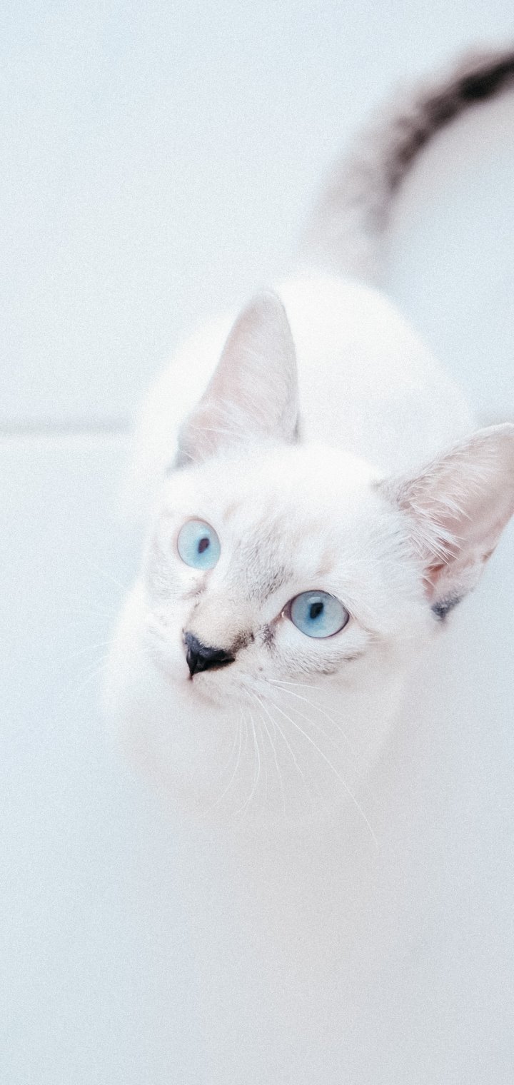 Обои: белая кошка, голубые глаза, взгляд - 720x1520