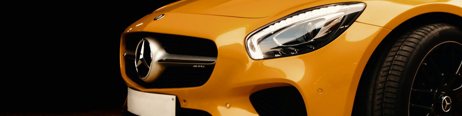 Обои: желтый Mercedes, спортивная машина - 1590x400