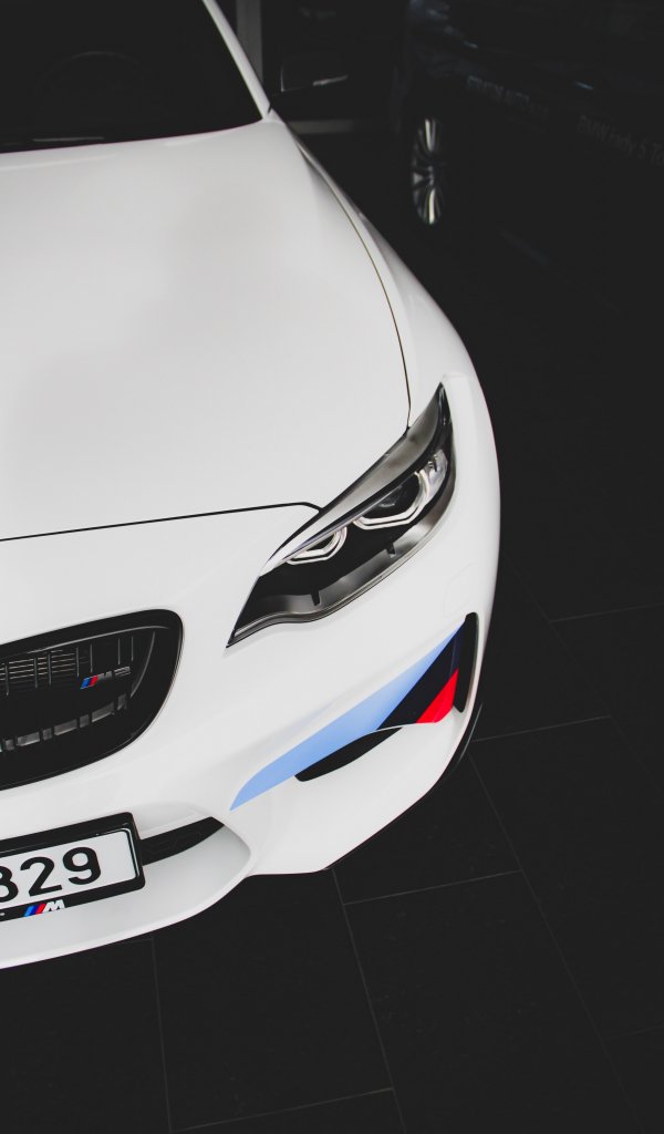 Обои: белый BMW M2, спортивная машина, черное и белое - 600x1024