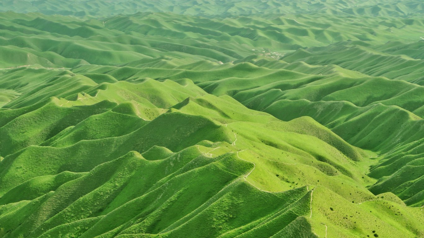 Обои: долина, вид с высоты птичьего полета, зеленый - 1366x768