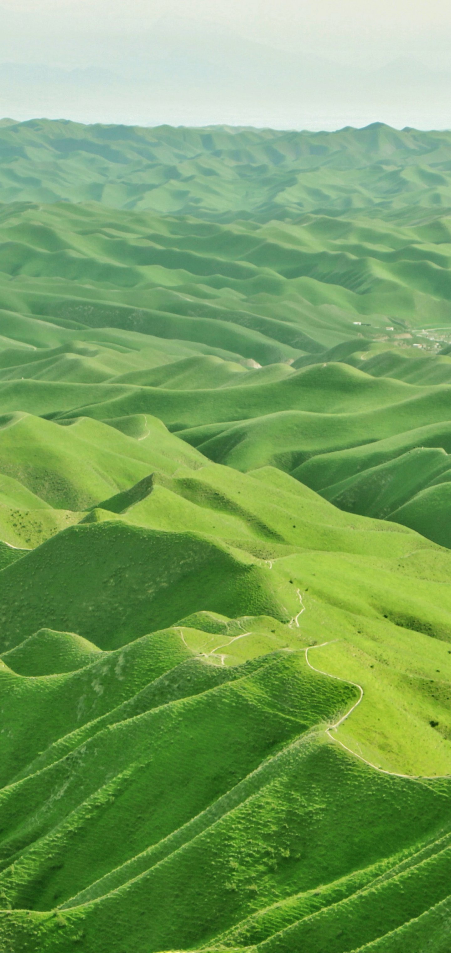 Обои: долина, вид с высоты птичьего полета, зеленый - 1440x3040
