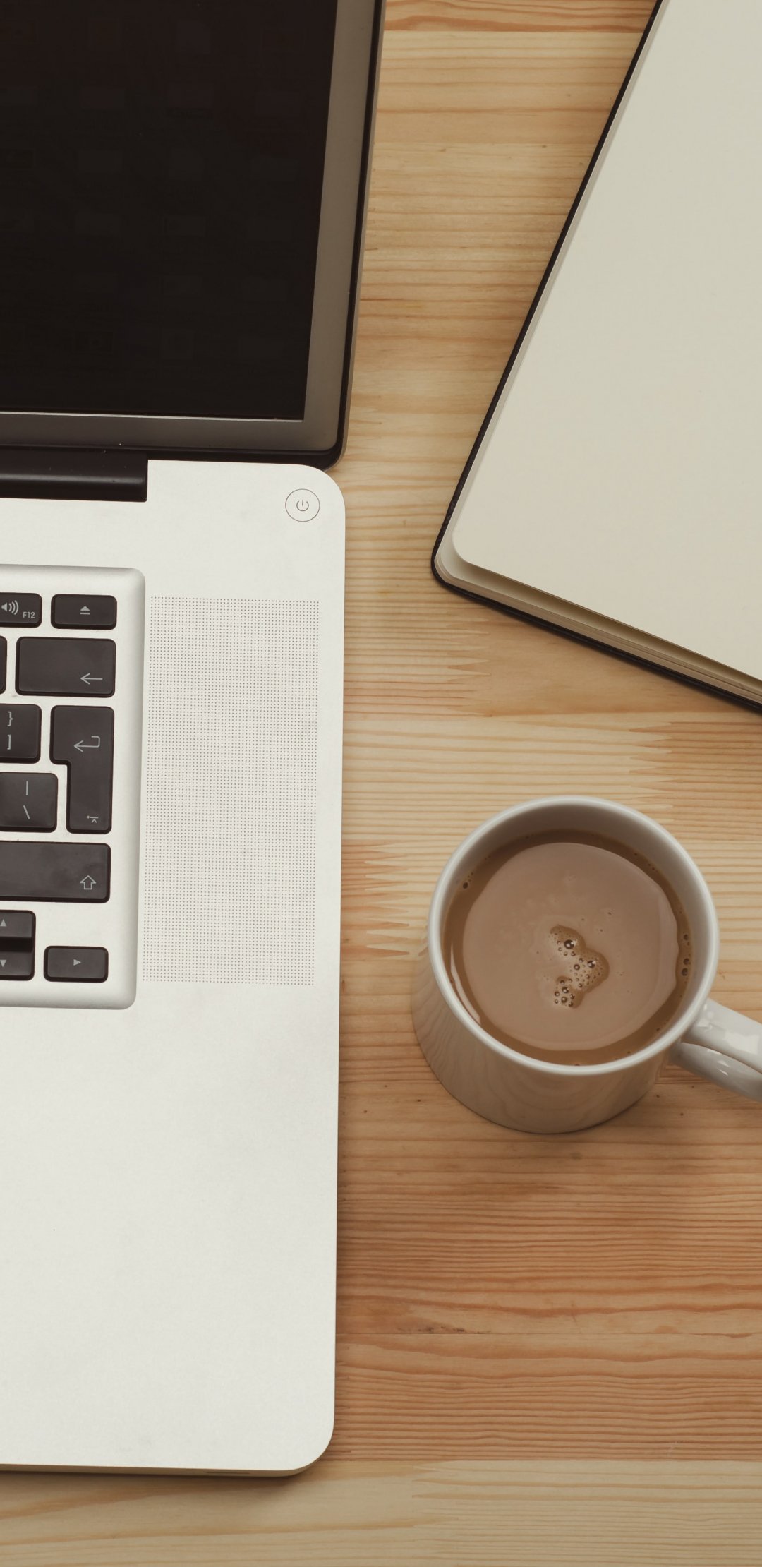 Обои: ноутбук, кофе, рабочее место - 1080x2220