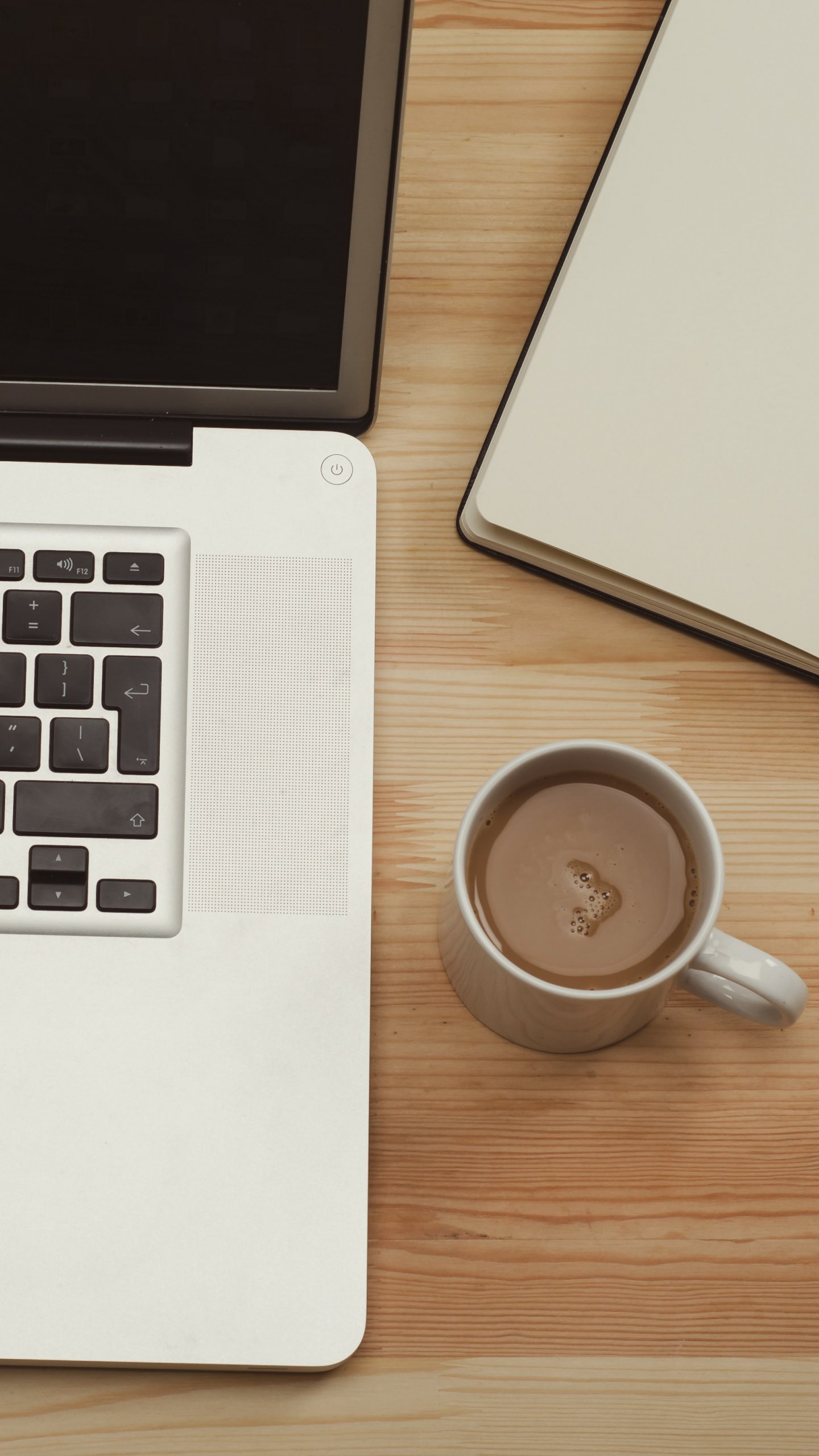 Обои: ноутбук, кофе, рабочее место - 1440x2560