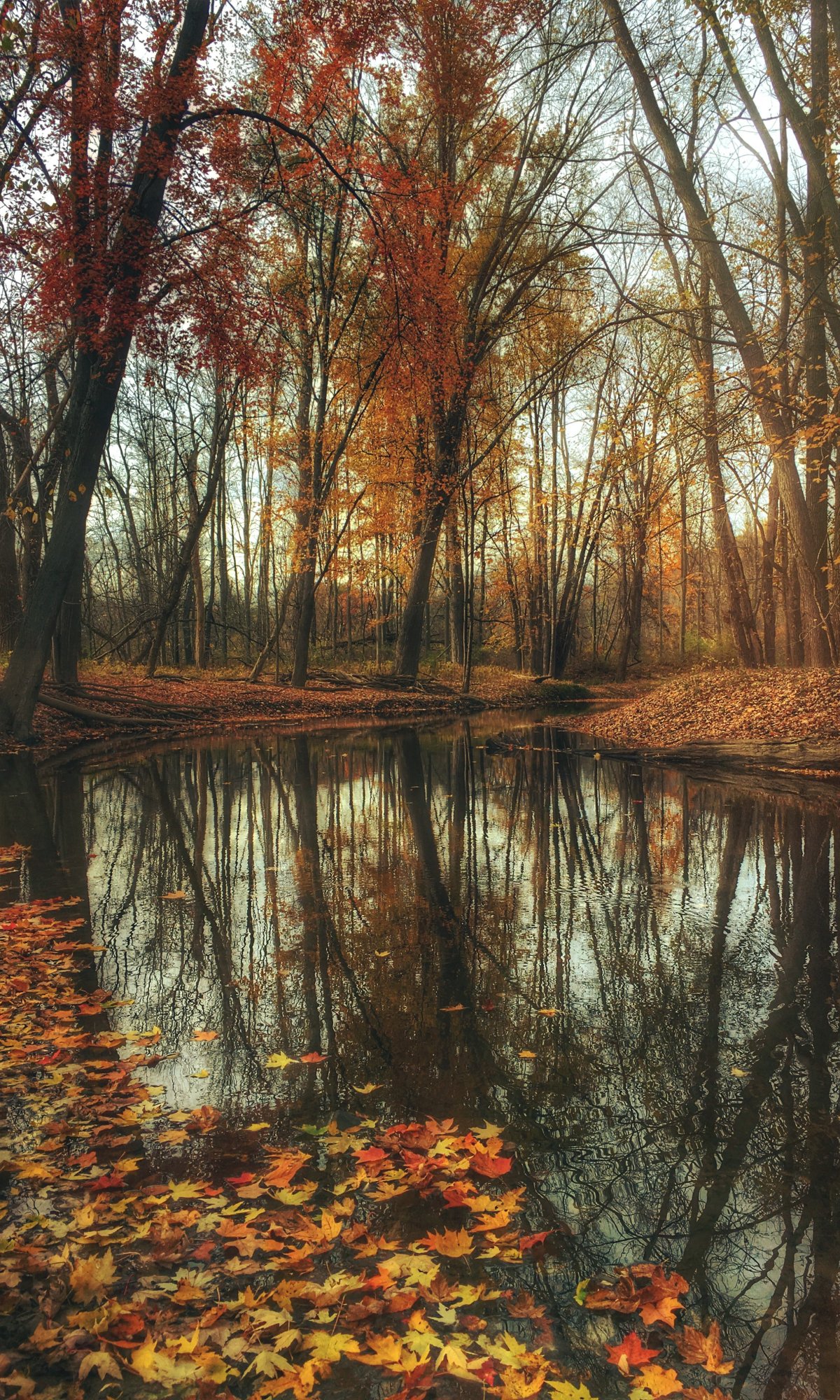 Обои: осенний лес, пруд, коричневый - 1200x2000