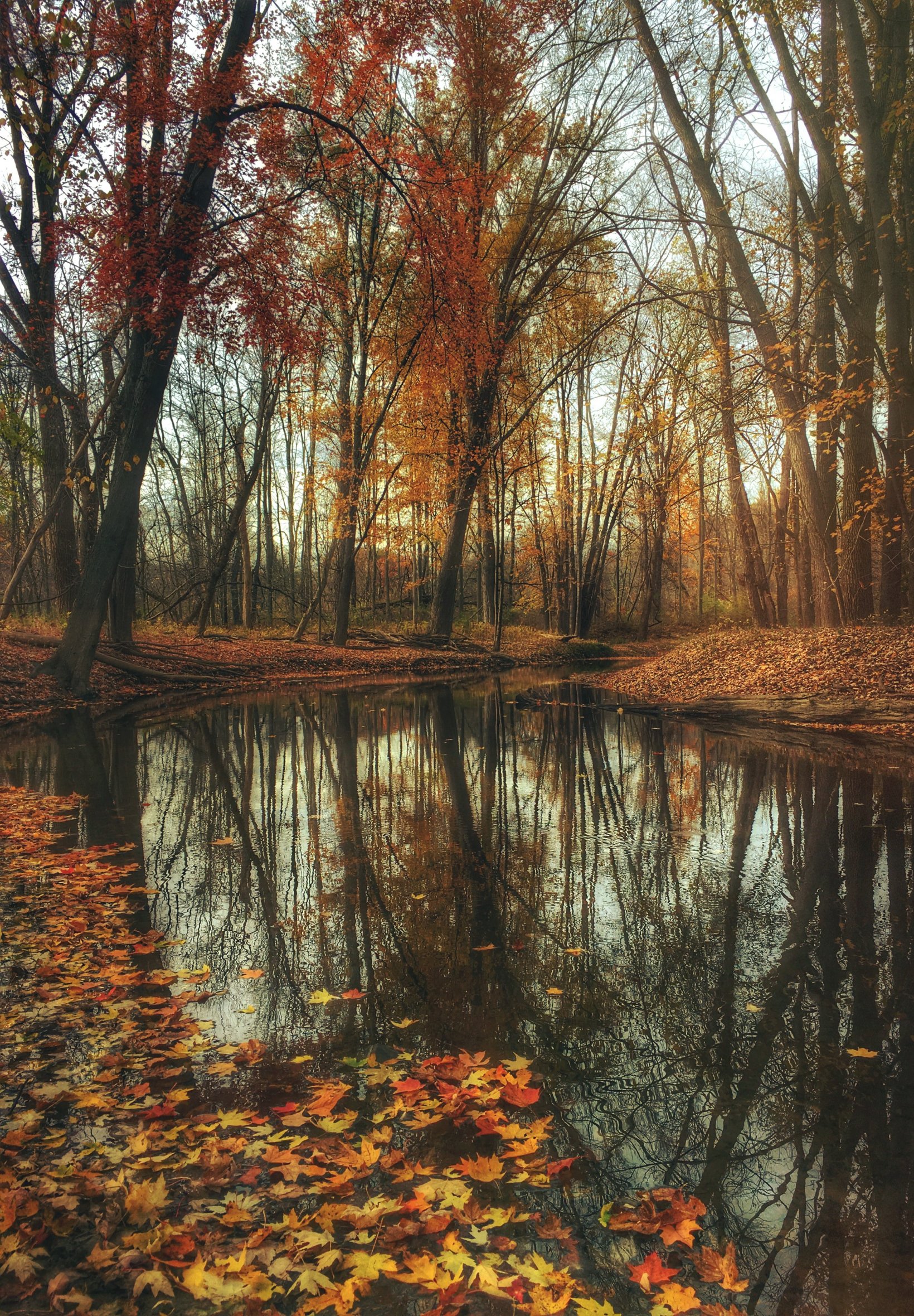 Обои: осенний лес, пруд, коричневый - 1640x2360