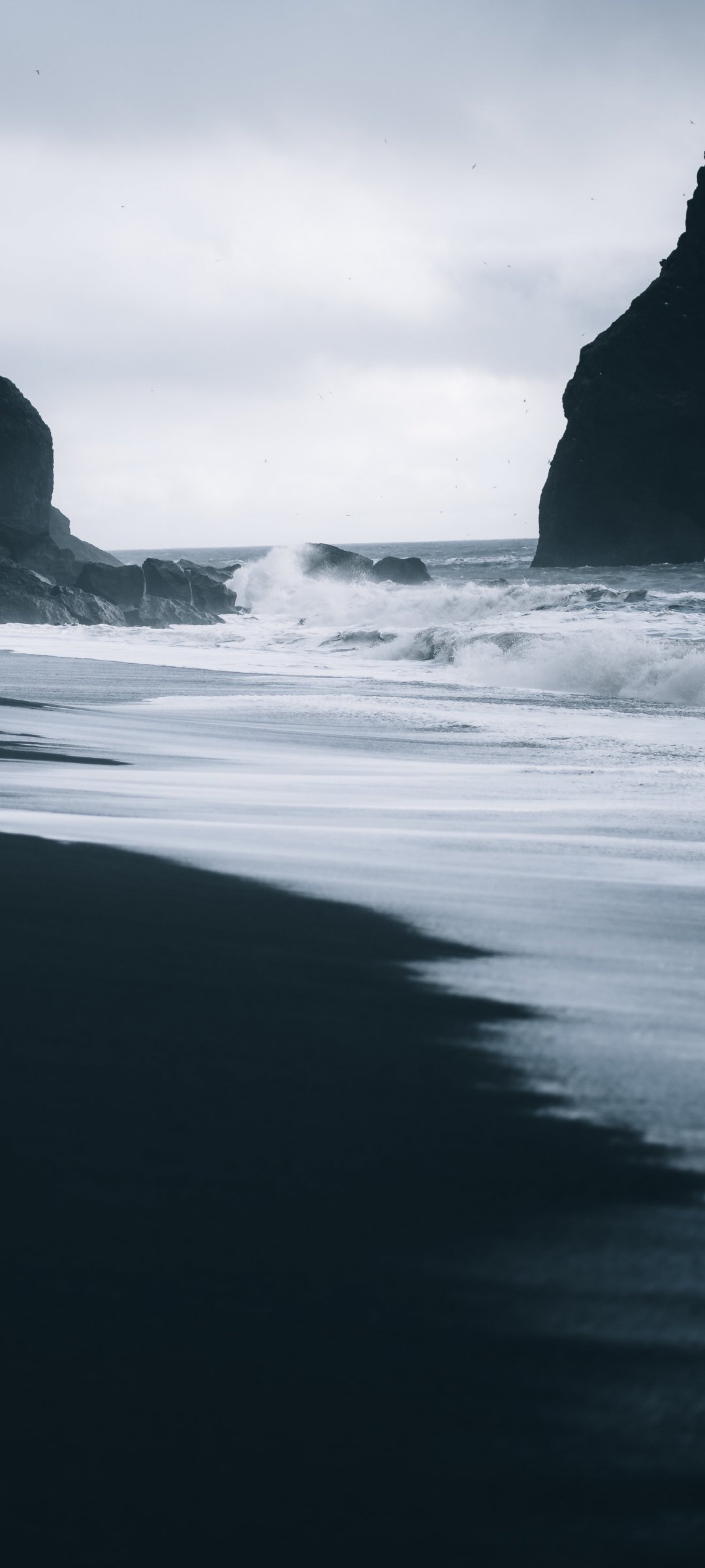 Обои: Пляж Рейнисфьяра, Исландия, темный - 1080x2400