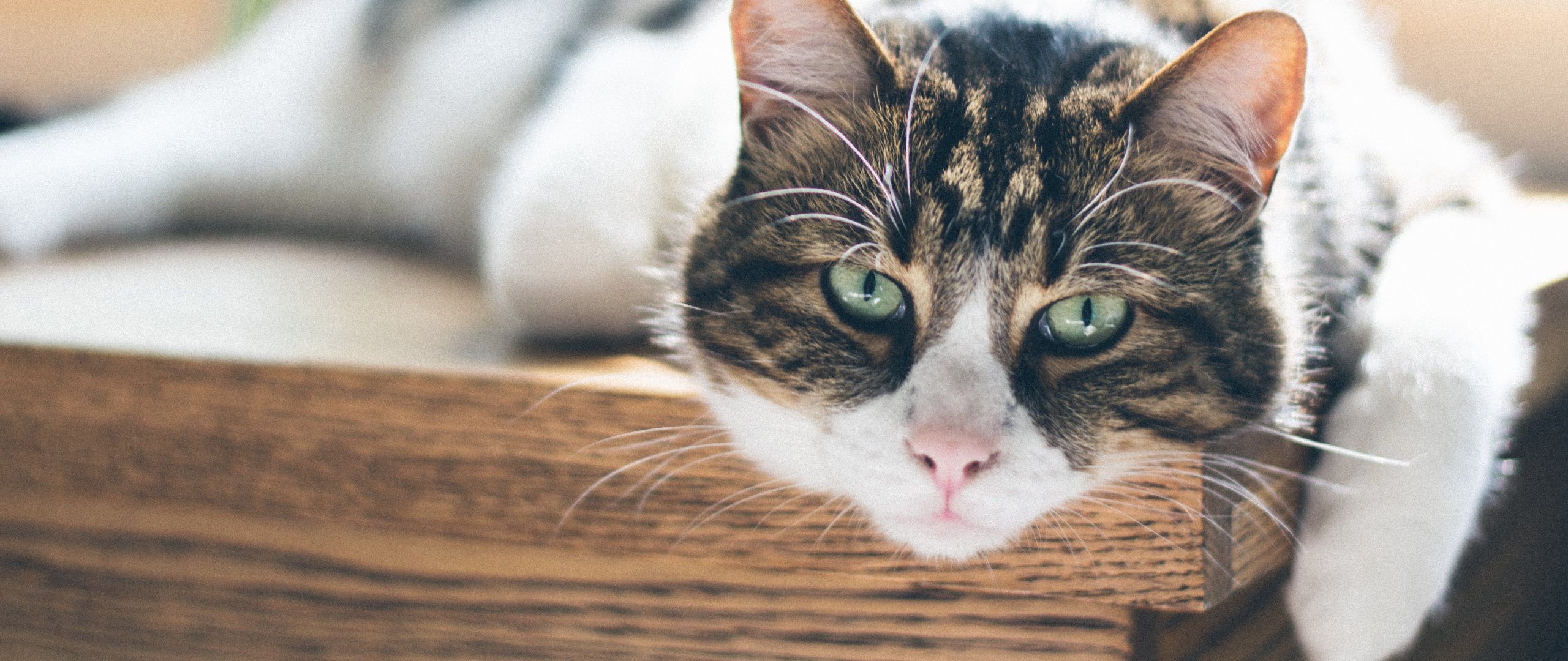 Обои: кошка, взгляд, зеленые глаза - 2560x1080