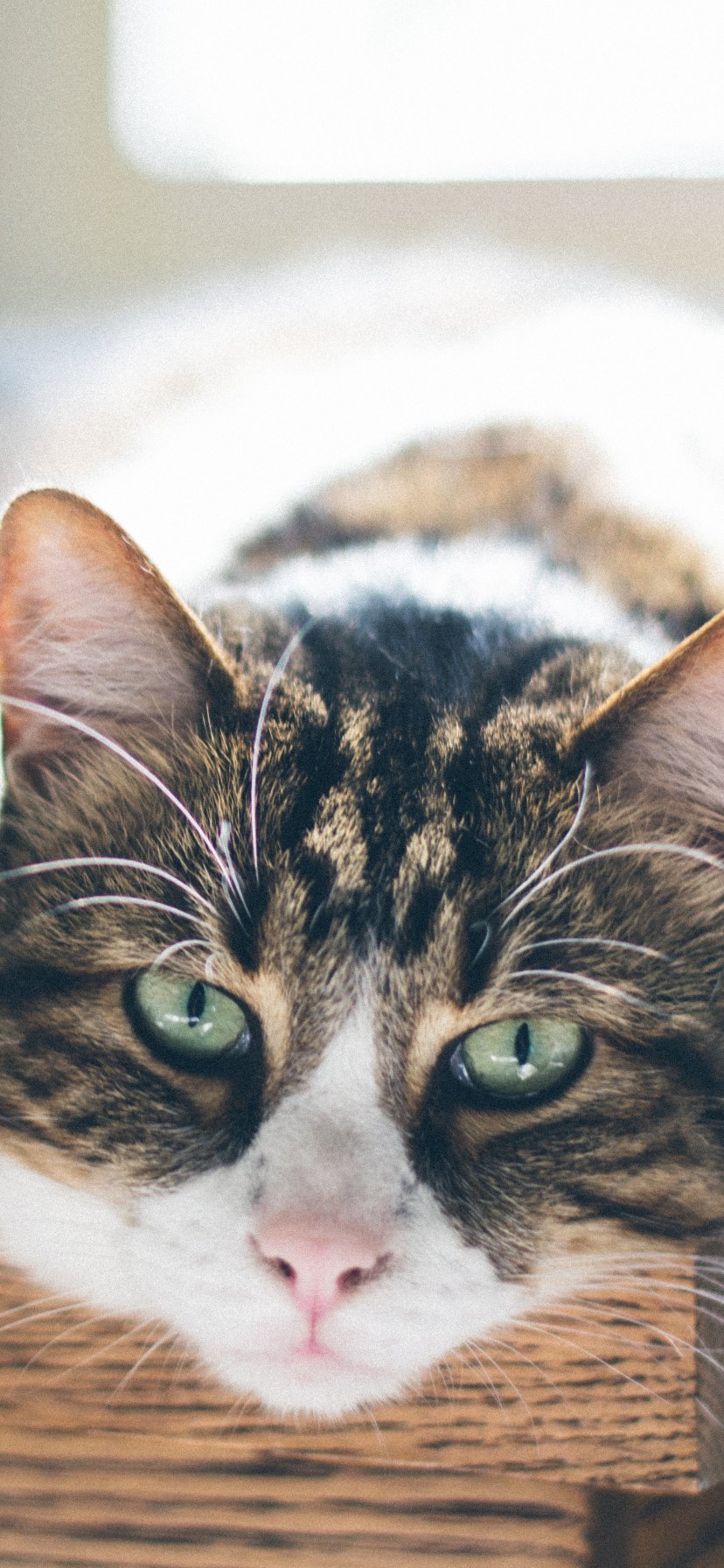 Обои: кошка, взгляд, зеленые глаза - 828x1792