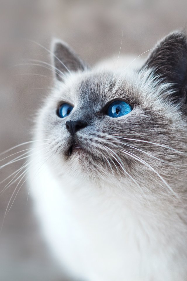 Обои: кошка, голубые глаза, взгляд - 640x960