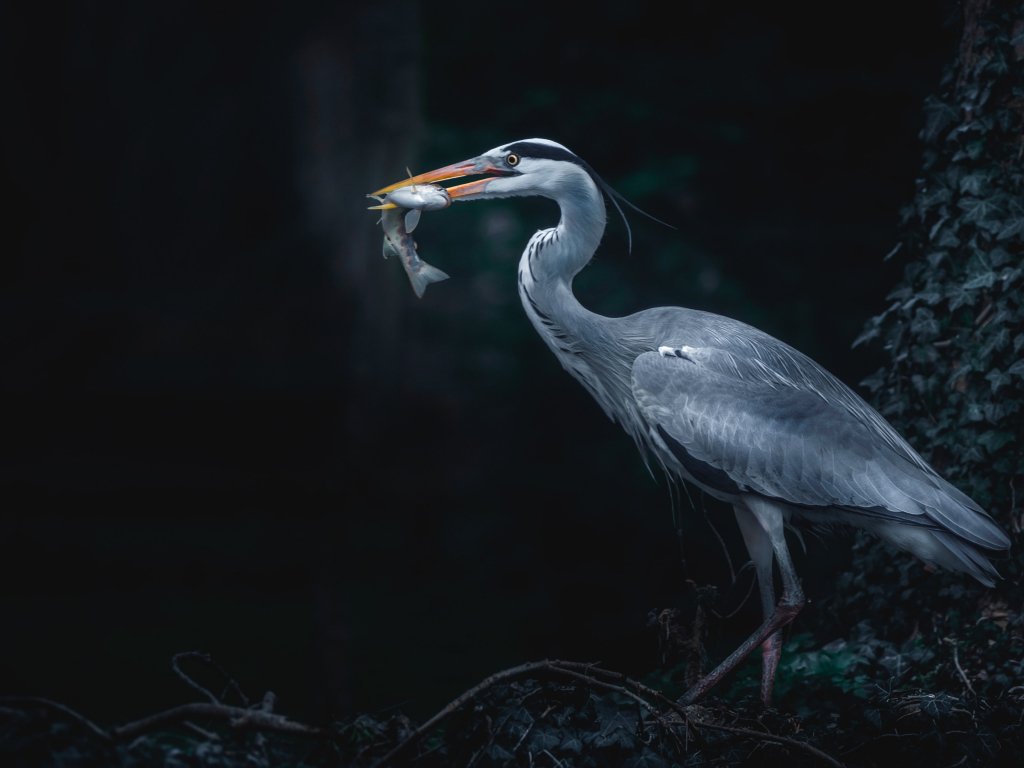 Обои: серая цапля, птица, темный - 1024x768