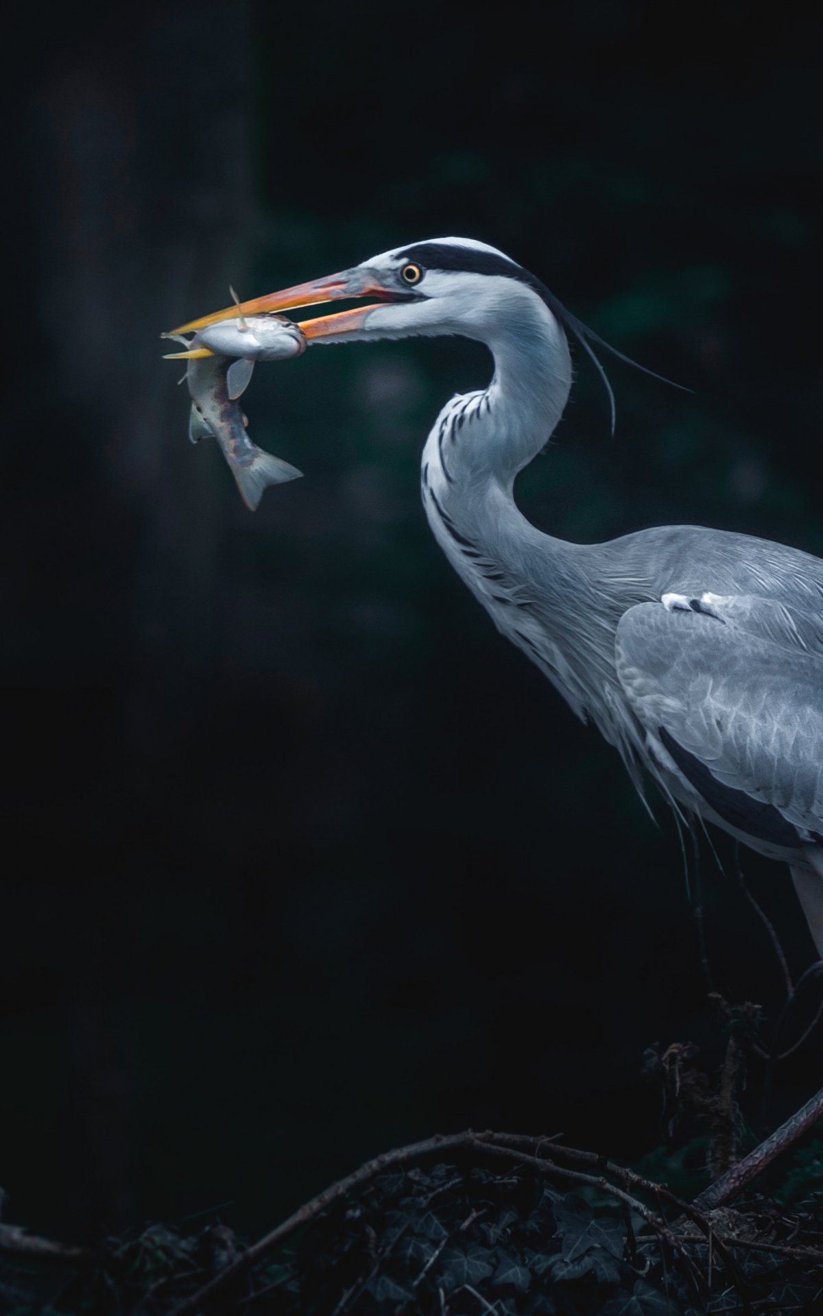Обои: серая цапля, птица, темный - 1200x1920