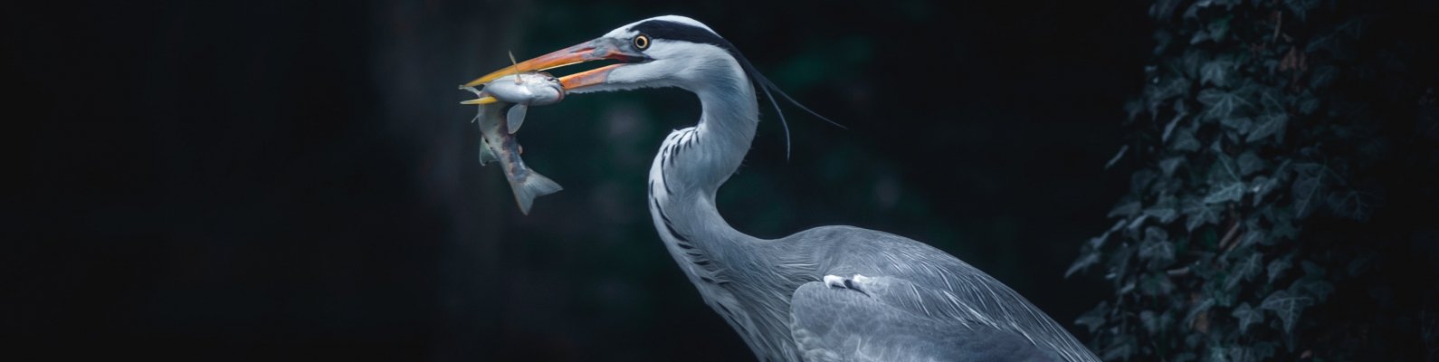 Обои: серая цапля, птица, темный - 1590x400