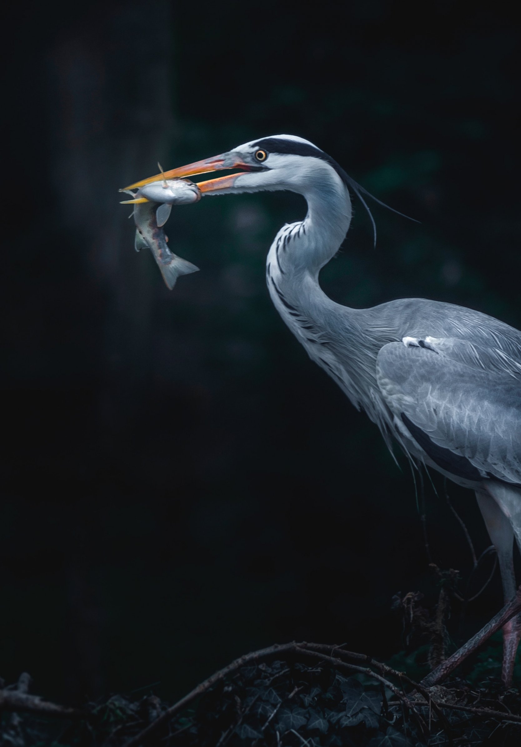 Обои: серая цапля, птица, темный - 1668x2388