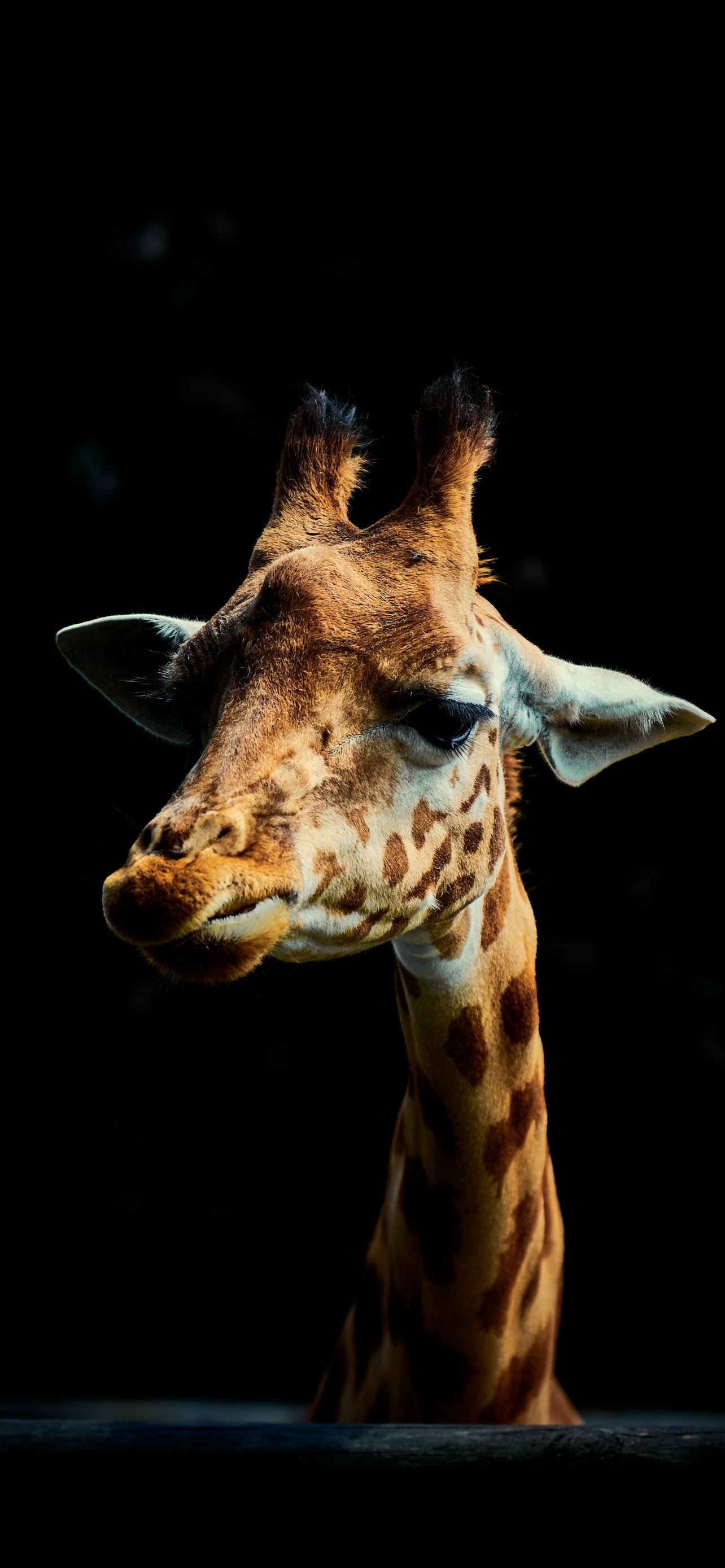 Обои: жираф, на черном фоне, дикая природа - 1284x2778