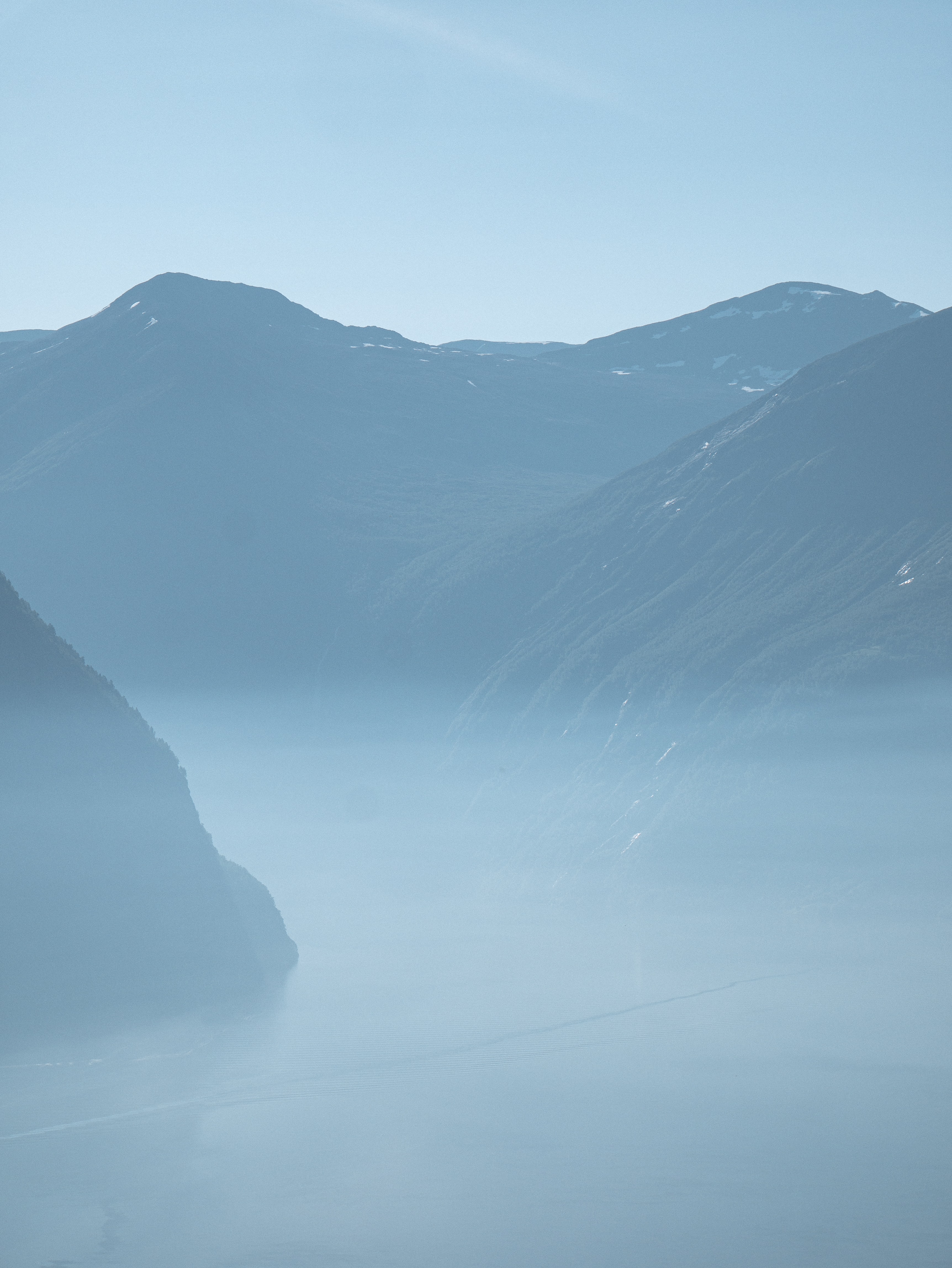 Обои: горный пейзаж, туман, голубой - 3448x4592