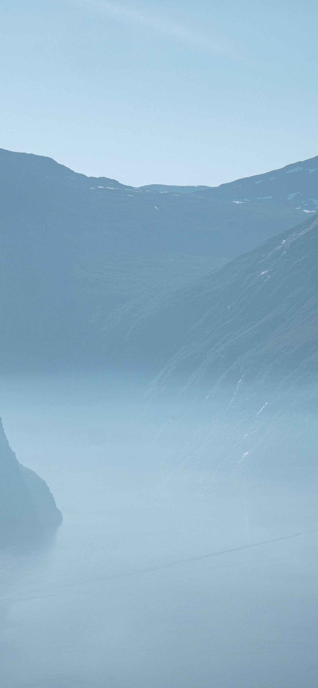 Обои: горный пейзаж, туман, голубой - 1242x2688