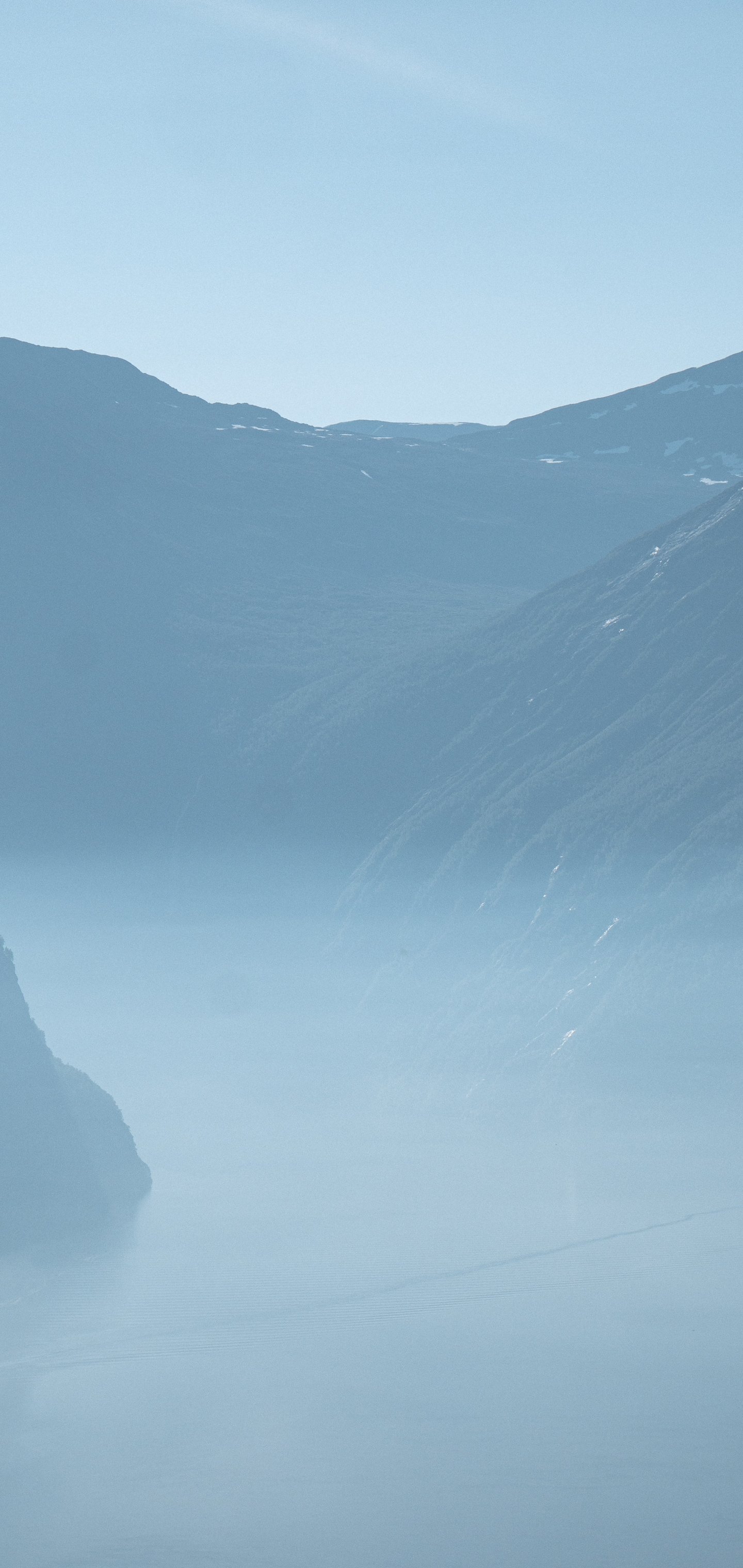 Обои: горный пейзаж, туман, голубой - 1440x3040